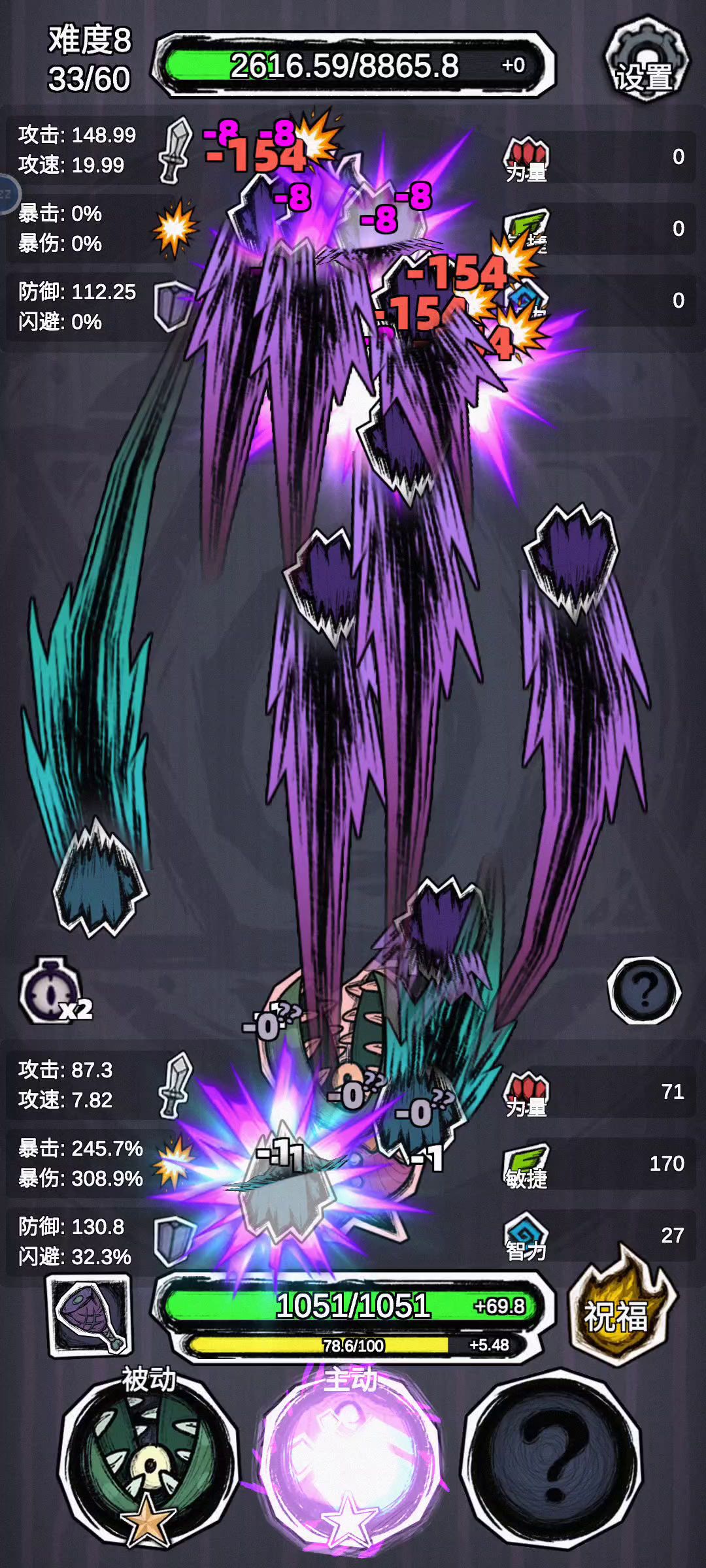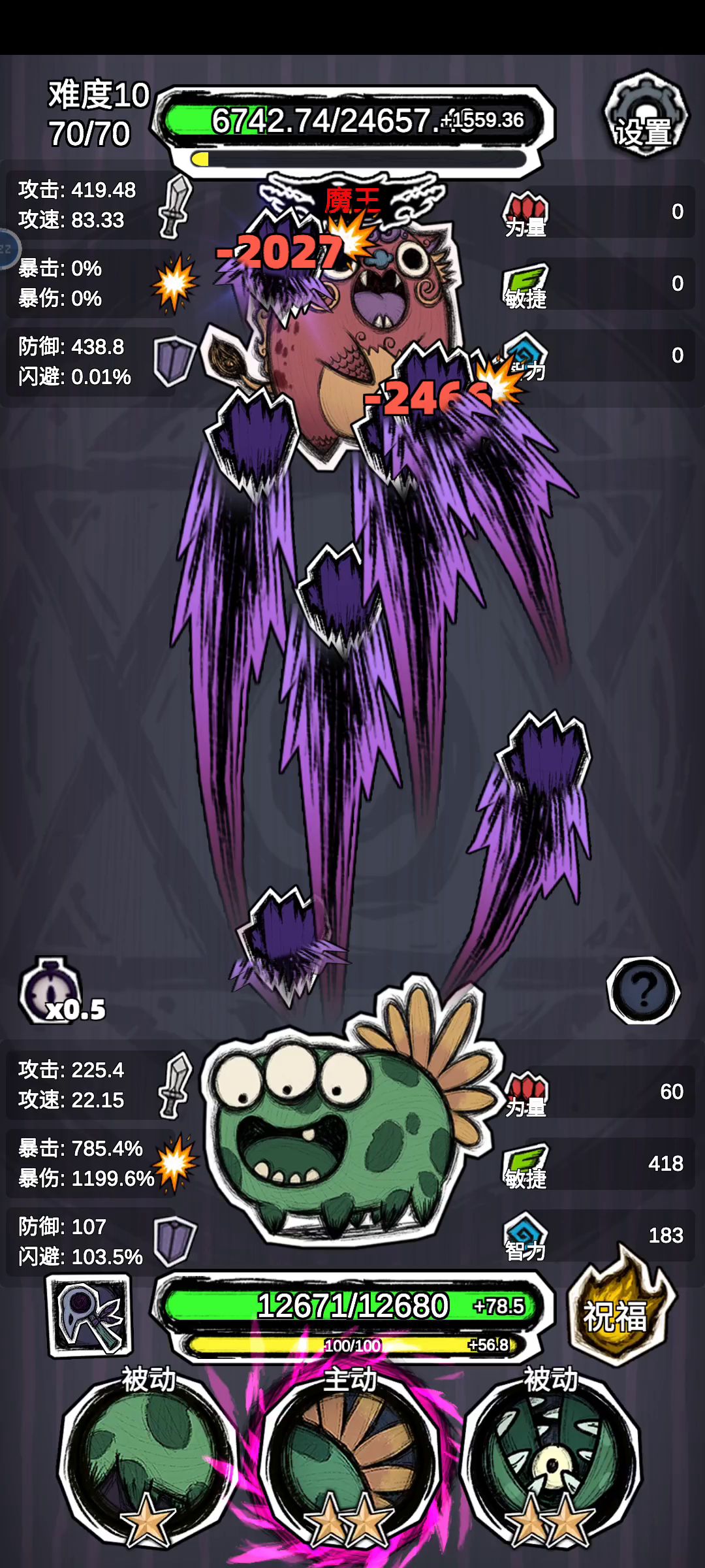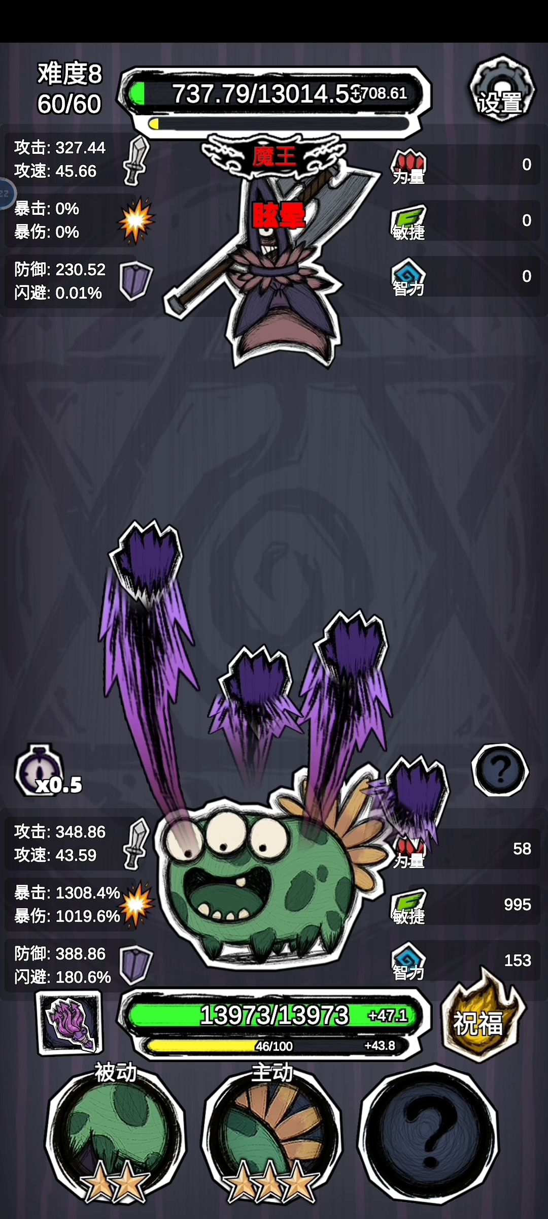 这是bug 我已经通了 发现只要攻速到了8以上攻击200左右就可以直接瞬杀 所以是bug