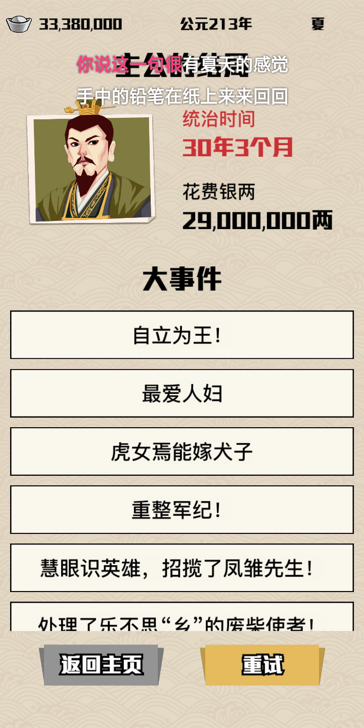 玩到后面自杀了,太无聊,没有突发事件