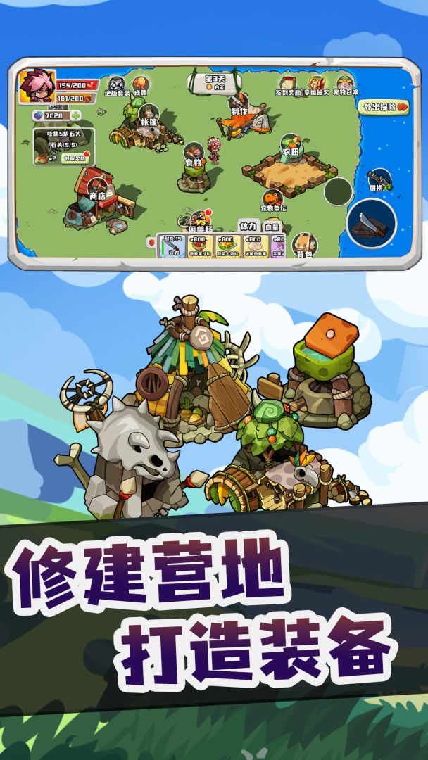 《恐龙岛大作战》是一款冒险生存类型的单机游戏。在游戏中,玩家扮演原始人角色,在各种类型的岛屿上探索,收集资源建设营地,制作武器、制作食物确保自己能生存下去。你还可以驯养各种各样的宠物,陪伴你战斗。游戏交流qq群:921449533