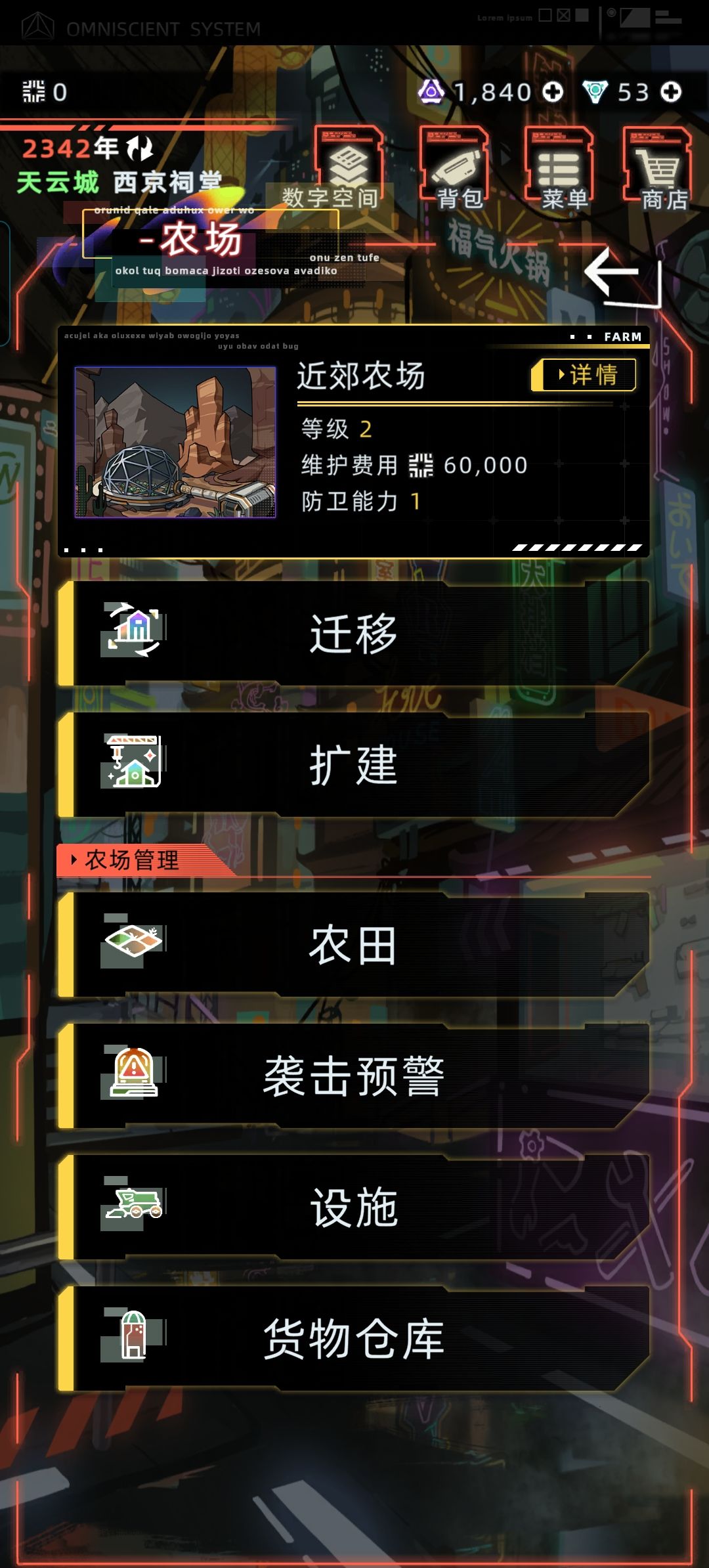 1.建立农场需要在资产——高级资产——农场处购买任意农场才可开始建设农场 [表情_举手]注意!农场可以在详情处结束农场运营,每年会有固定的维护费用 似乎可以在继承时选择不要农场来结束农场运营,不过买农场的钱不退 2.如果不与贸易公司玩法联动,推荐在货物仓库中开启自动售卖,每年自动售出收获的作物 3.市场中的原材料可用于升级农场,记得每年购买需要的原材料 ①扩建农场需要信用点、混凝土、钢筋、晶圆(重