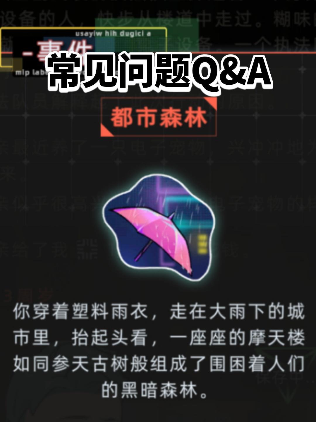 【疾病篇】 Q:阿尔兹海默症如何治疗? A:得病『当年』去中医院『概率』治好,建议大退卡掉病症,该病治疗概率偏低。 Q:艾滋病如何避免/治疗? A:不与酒馆内npc共鸣。中医院调理馆「祛邪截疟膏剂」概率治疗。 【活动篇】 Q:黑日/幻影不进行任务后遗症是什么? A:幻影为所有关系npc都有概率沉迷幻影,无法互动且概率向主控要周边,若伴侣沉迷而无继承人则有断档风险,持续年份较长,建议完成。 黑日为十