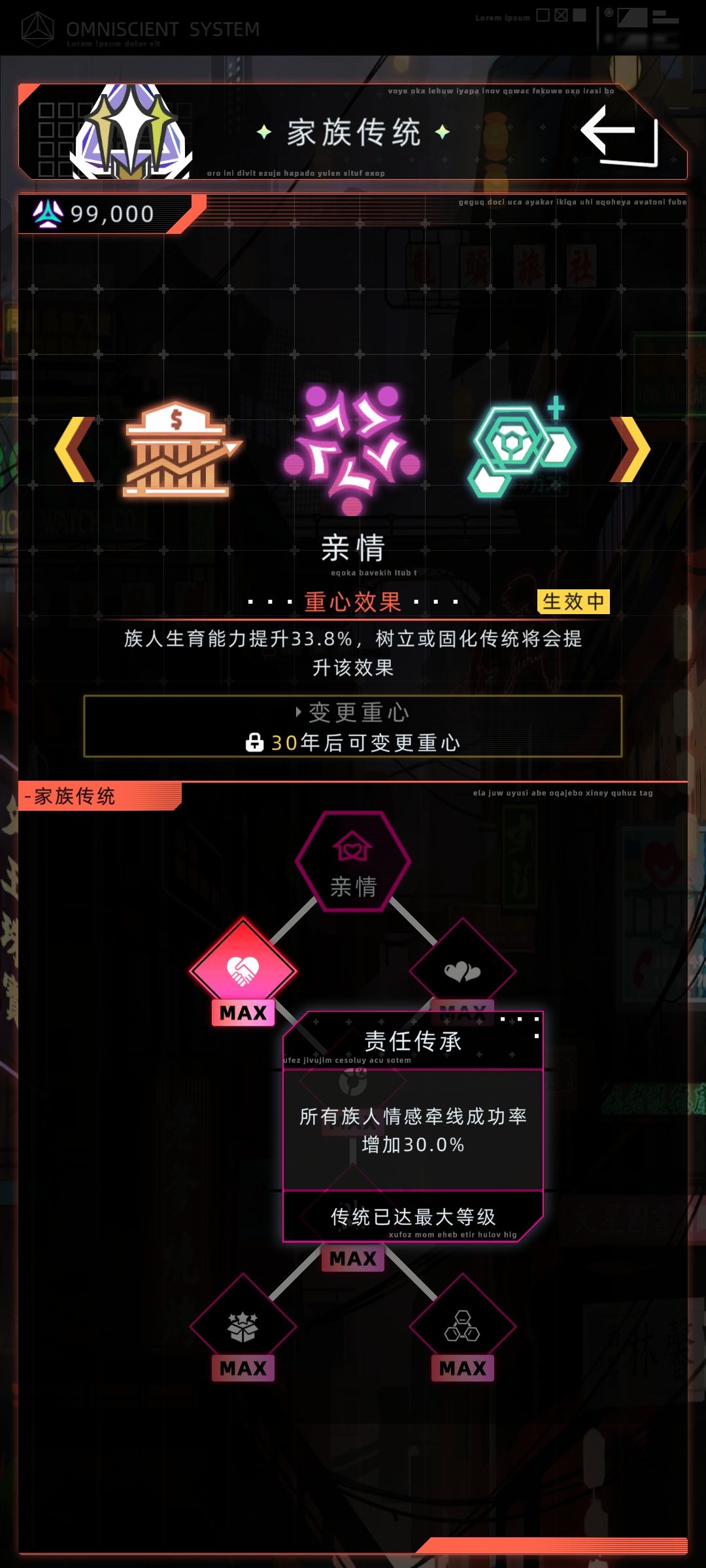 #未来人生 #婚恋专家 1选择抱负(一定要先确定这个抱负,这样后才能记录说媒的次数 2点亮如图2家族的传统 3与配偶生5个及以上的子代(建议比这个多些,增加容错,5个是最基本),并培养,选择提升魅力的选项,或者有天赋家庭教育的话,选择家教选项(注意下生太多产生的debuff如图4 4如图5到高空公路上找人(一定要等子代22岁后,且找的人22岁后,这是法定结婚年纪,低于这个年纪说媒无法直接让其直接