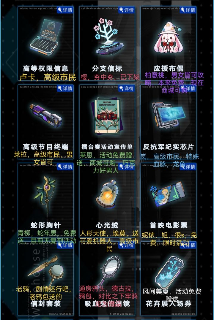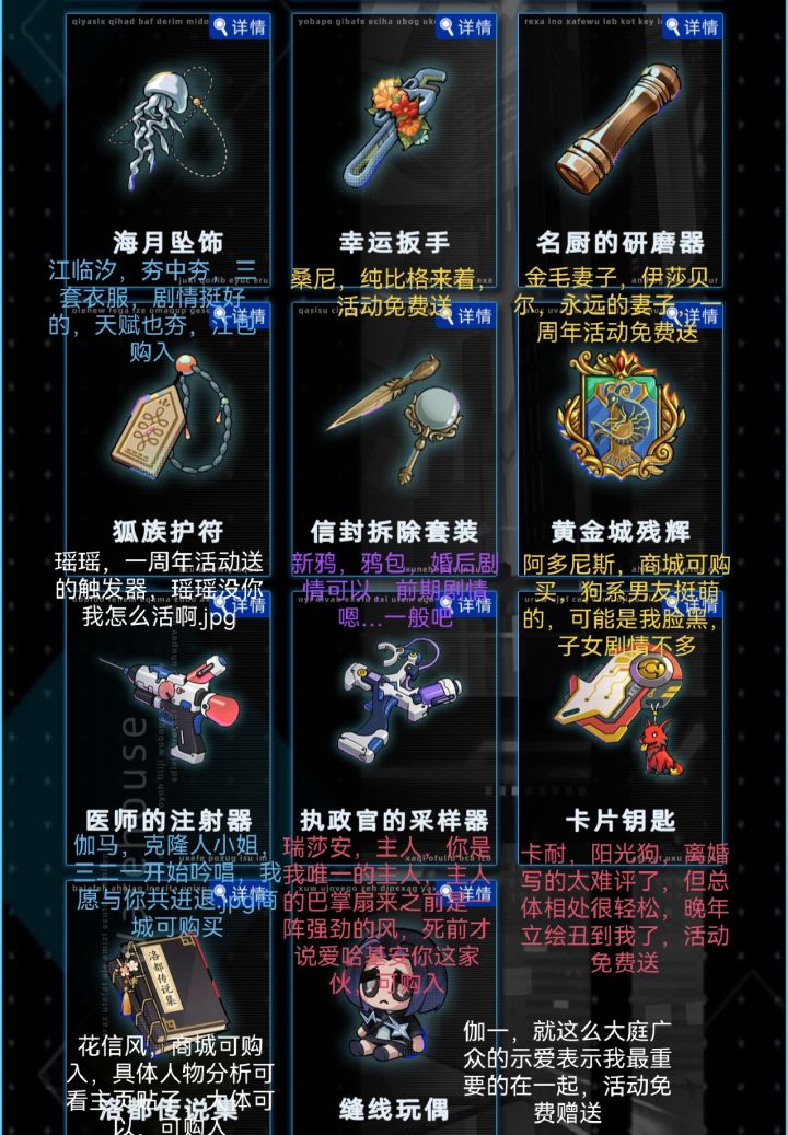 可自行对照,这是哈基匠全角色触发器,文照澜、赫恩、卢娜没有触发器随机触发。很多都是限时免费角色#未来人生