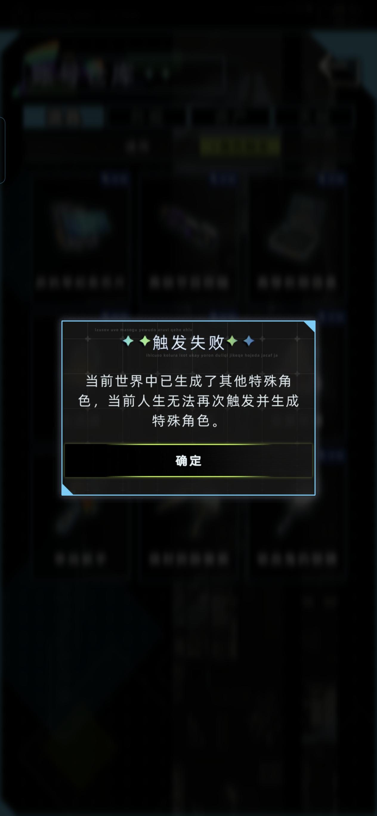带了狼裔始祖和出海的两个天赋,目前到25岁都没有遇到涂山瑶,其他角色没开新档前触发都关了。然后准备主动开法蒂玛的触发,结果告诉我当前世界已经存在特殊角色了,不是,特殊角色谁啊?我自己吗?#未来人生 #游戏日常 #