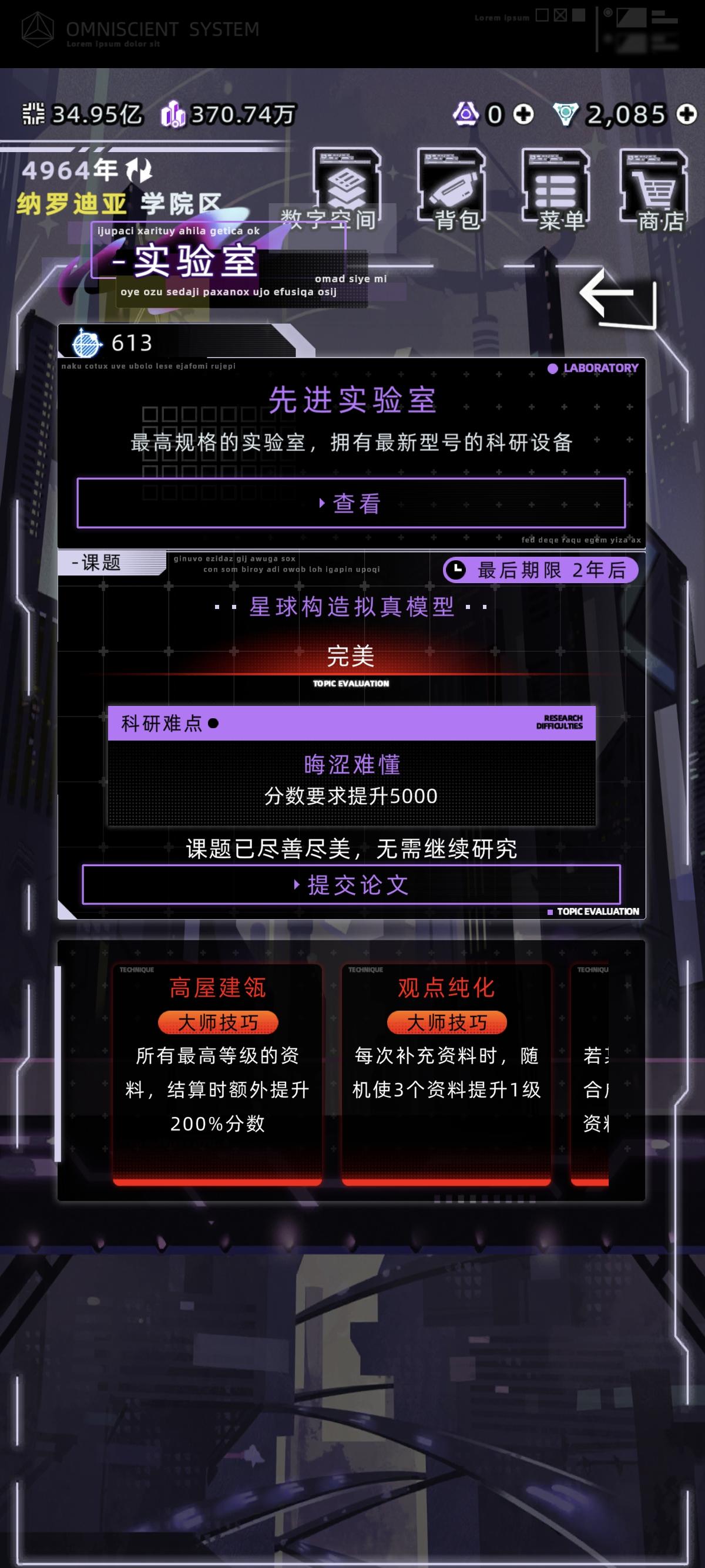 感觉之前那个攻略有点智障了,又优化了一下首先直接开始下一年,学习,学数字空间开发,结束中级学业,开始工作选项主要点理解力和熟练度,有点钱可以在资产设备中型买一个便携式工作站和全知辅助装置买一个脸部加熟练度的和颈部加理解力的,算法改进不用认真全消,改进先把可维护加到90,后面全加速度,这样每年都有不低的收入,在这个过程中可以收养一个孩子,他8岁带他去看数字骇客,只要有就看,保证在你死