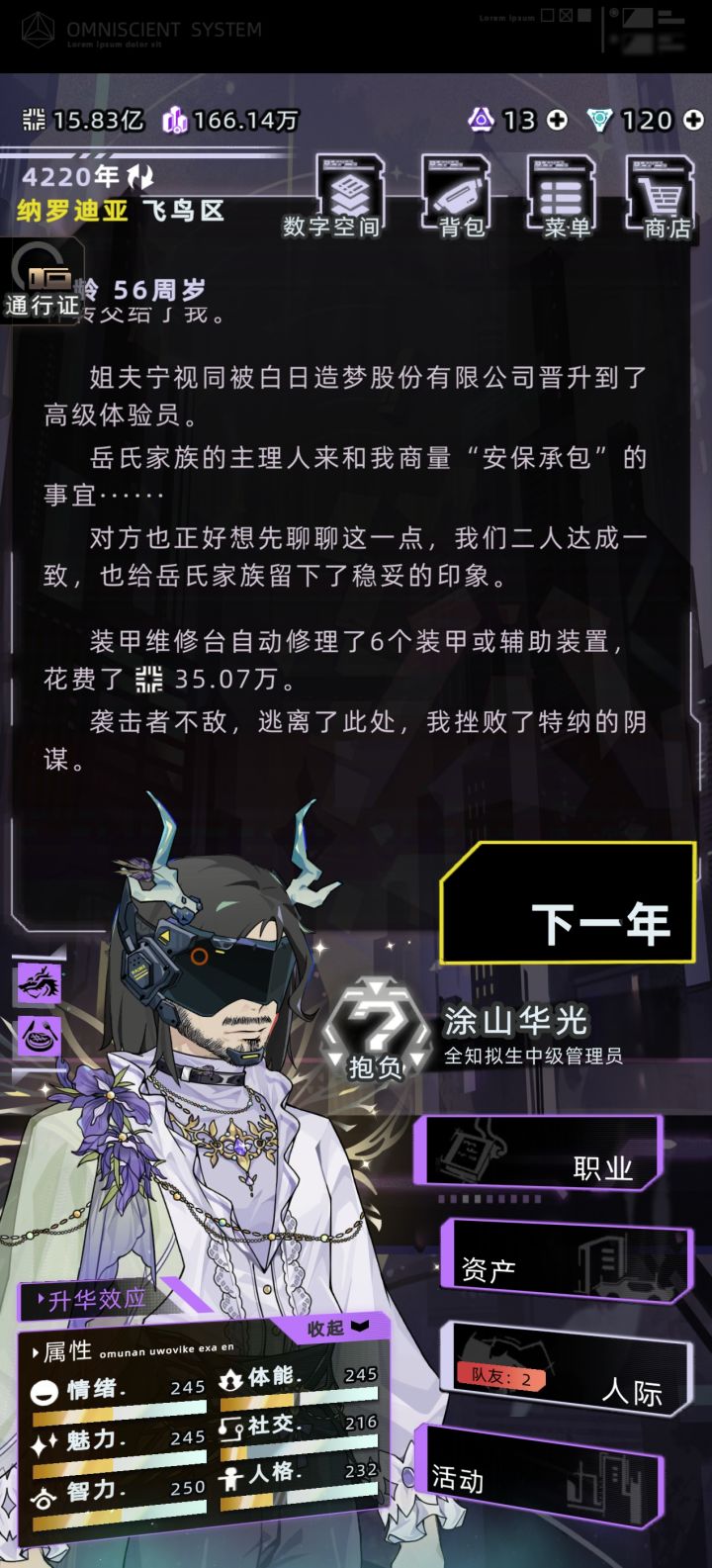 还行吧,头像和明信片没截,上头还可以。五官没整完,大家应该很多是喜欢他们的眼睛。车有点拉,宗族宅邸适合升级上层家族吧,要不要购入看自己选了#未来人生