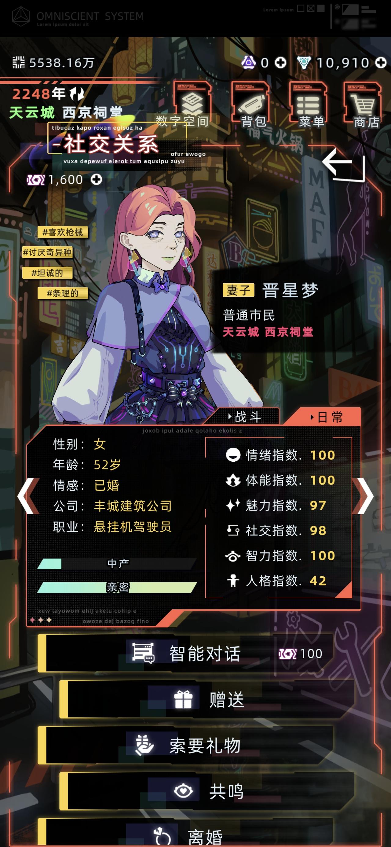 感觉之前那个攻略有点智障了,又优化了一下首先直接开始下一年,学习,学数字空间开发,结束中级学业,开始工作选项主要点理解力和熟练度,有点钱可以在资产设备中型买一个便携式工作站和全知辅助装置买一个脸部加熟练度的和颈部加理解力的,算法改进不用认真全消,改进先把可维护加到90,后面全加速度,这样每年都有不低的收入,在这个过程中可以收养一个孩子,他8岁带他去看数字骇客,只要有就看,保证在你死