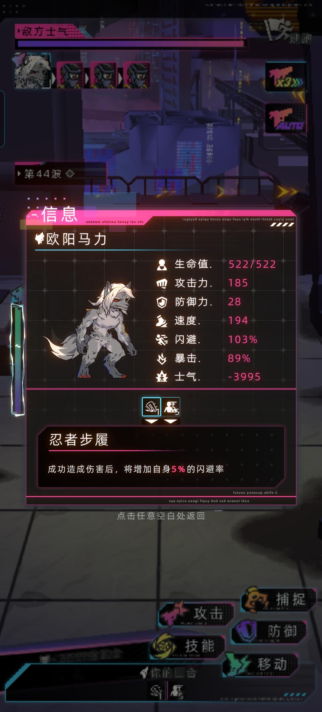 狼血目前到现在,大多数人都说没什么用,除了加属性,然后装装备一爆,瞬间从狼变狗,属性全都掉完,这确实是一大痛点。但如果对面打不中呢,所以说后面我几番尝试,突然间发现,好像这才是真正的用法,装备如下:下忍腿,忍者大师手,便携展包,其他随意。只要把闪避属性堆到50%。然后借助下忍腿的被动,开局给他叠到五层,就将近有百分之75的闪避。这时候再借助狼人变身。就可以瞬间把闪避属性堆到100%往上。这时候我