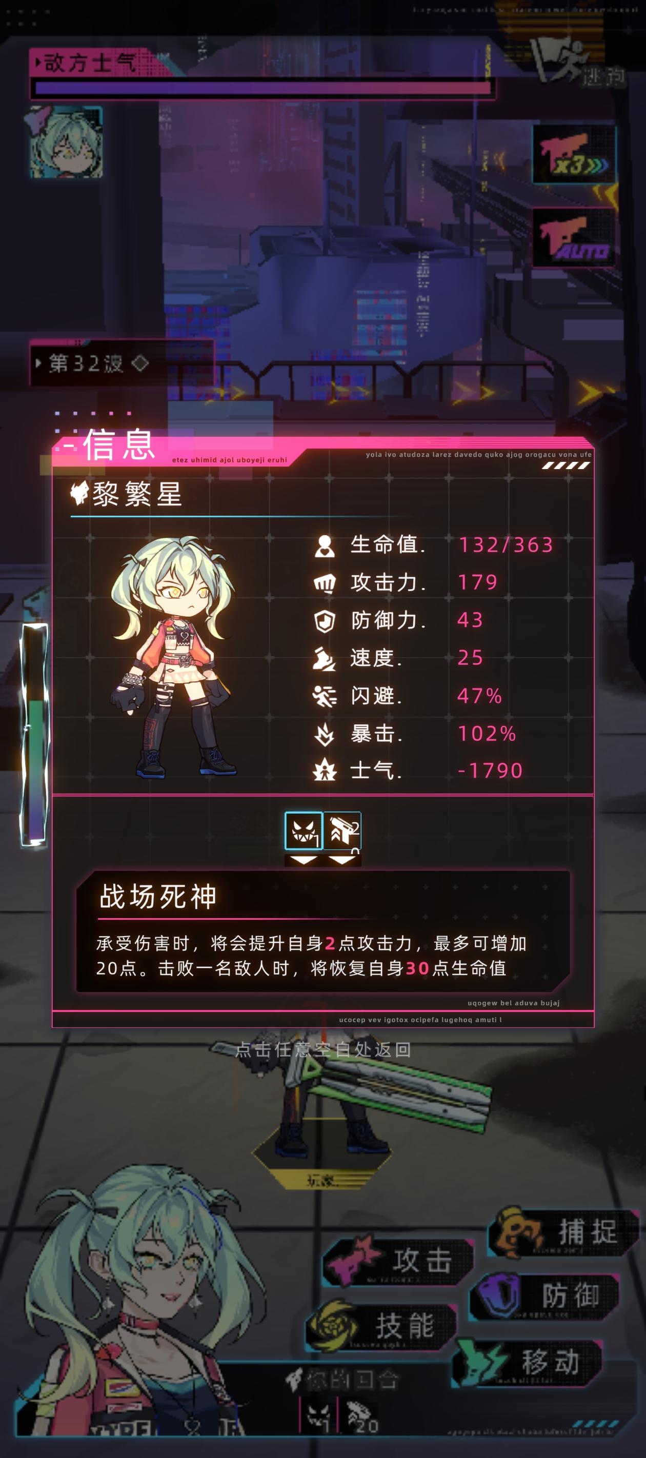 主控号,带了真神绝对理智和天生战士,装备都装上之后,数据挺高的,打了几个地方感觉没什么挑战性。然后想起来了去挑衅执法局,没想到他之前打几波之后强制世界树数据入侵然后被捕改了,现在你击败一波之后就继续来一波人。他一波怪属性比一波怪高啊,如图片撑到了32波。##未来人生