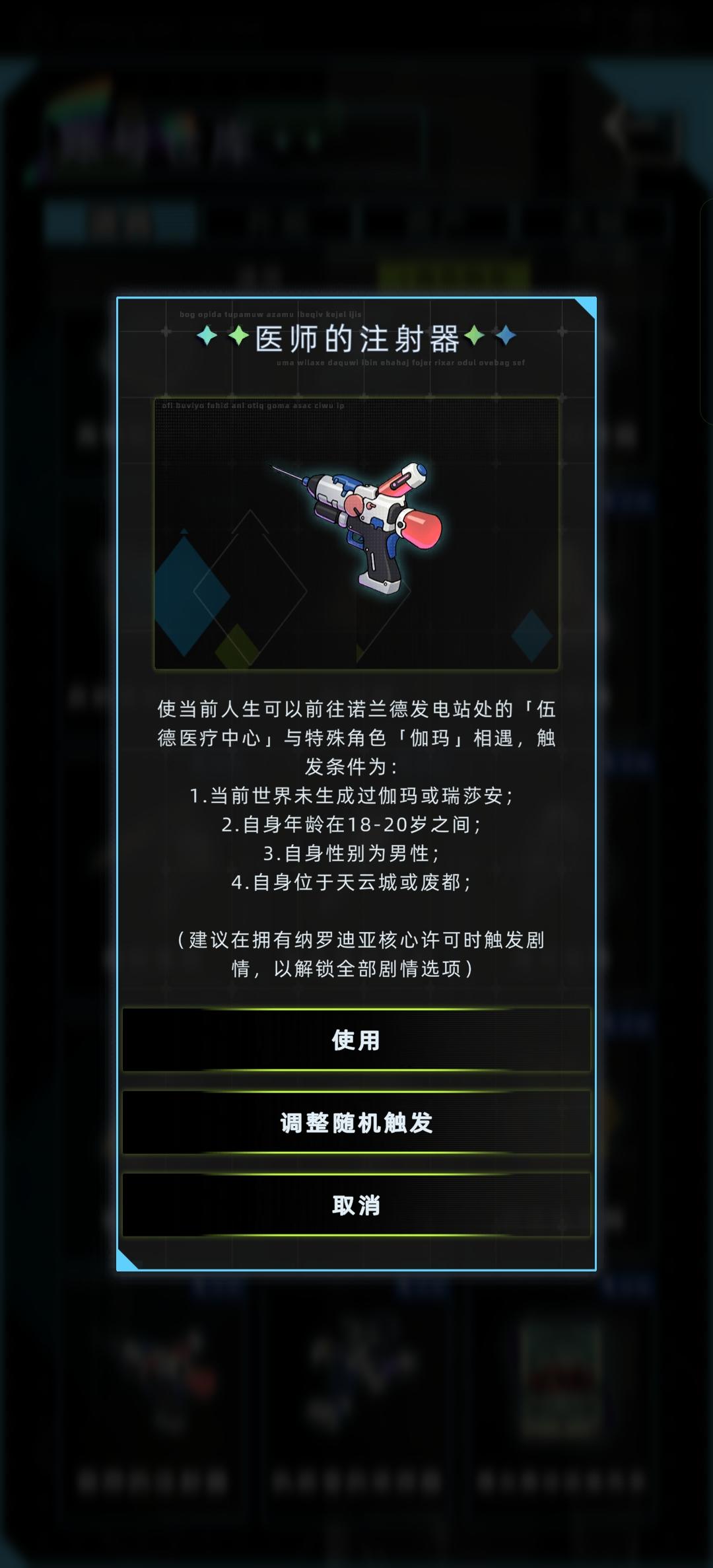 !!!永生线必须要有纳罗迪亚核心许可!!!1.相遇:男性,18-20岁,诺兰德发电站-伍德医疗中心,触发初遇事件。2.一些节点:初遇选择“这终端上是什么?(逼问)”-“或者...我可以帮你?”,成功交友;后续几年选择“邀请观影”、“前往探望”、“联系伽马”;弹相应橙字后可以追求成为恋人;发现真相,选择“未来的事情,谁也不知道”-“没有人了解自己”-“不用考虑这些”,之后选“...你开心就好”;