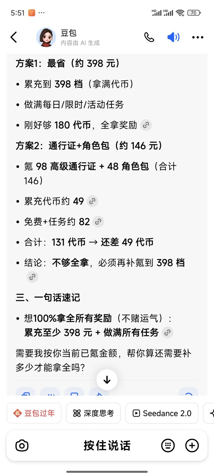 豆包说得冲398
