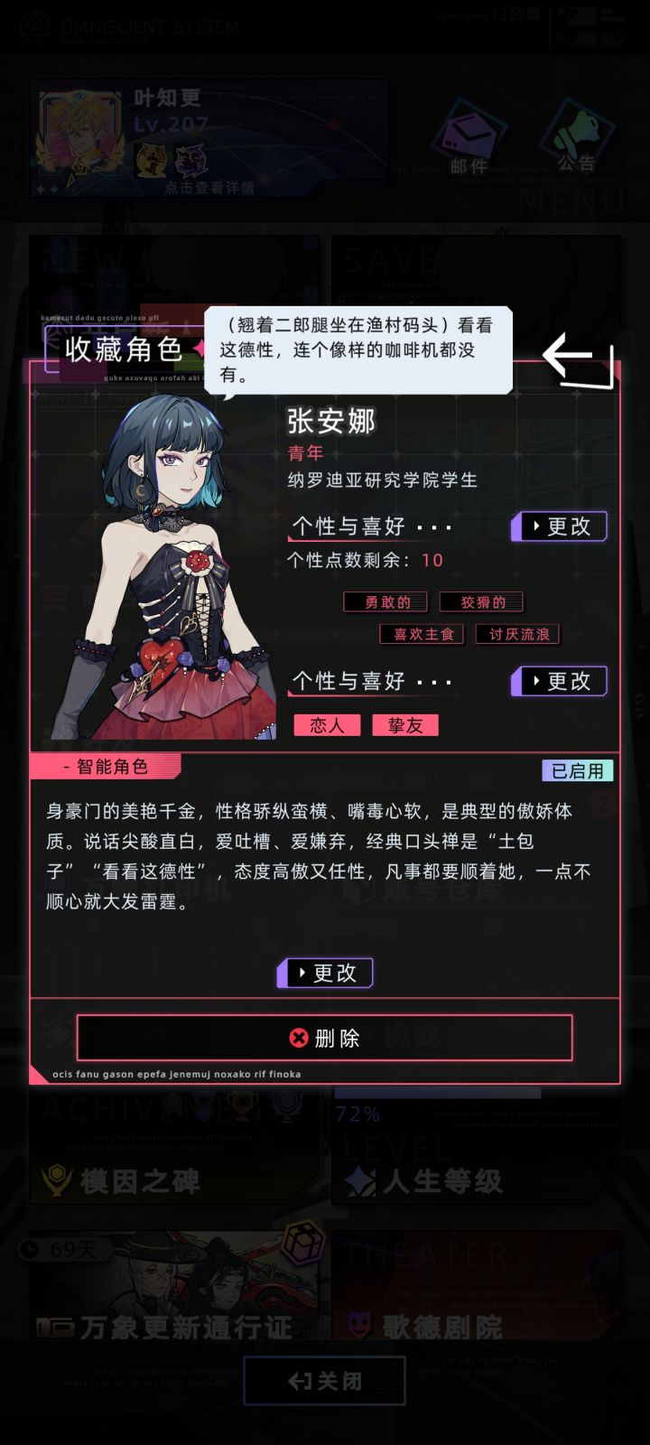 人物性格照着罗丧失模板捏的
