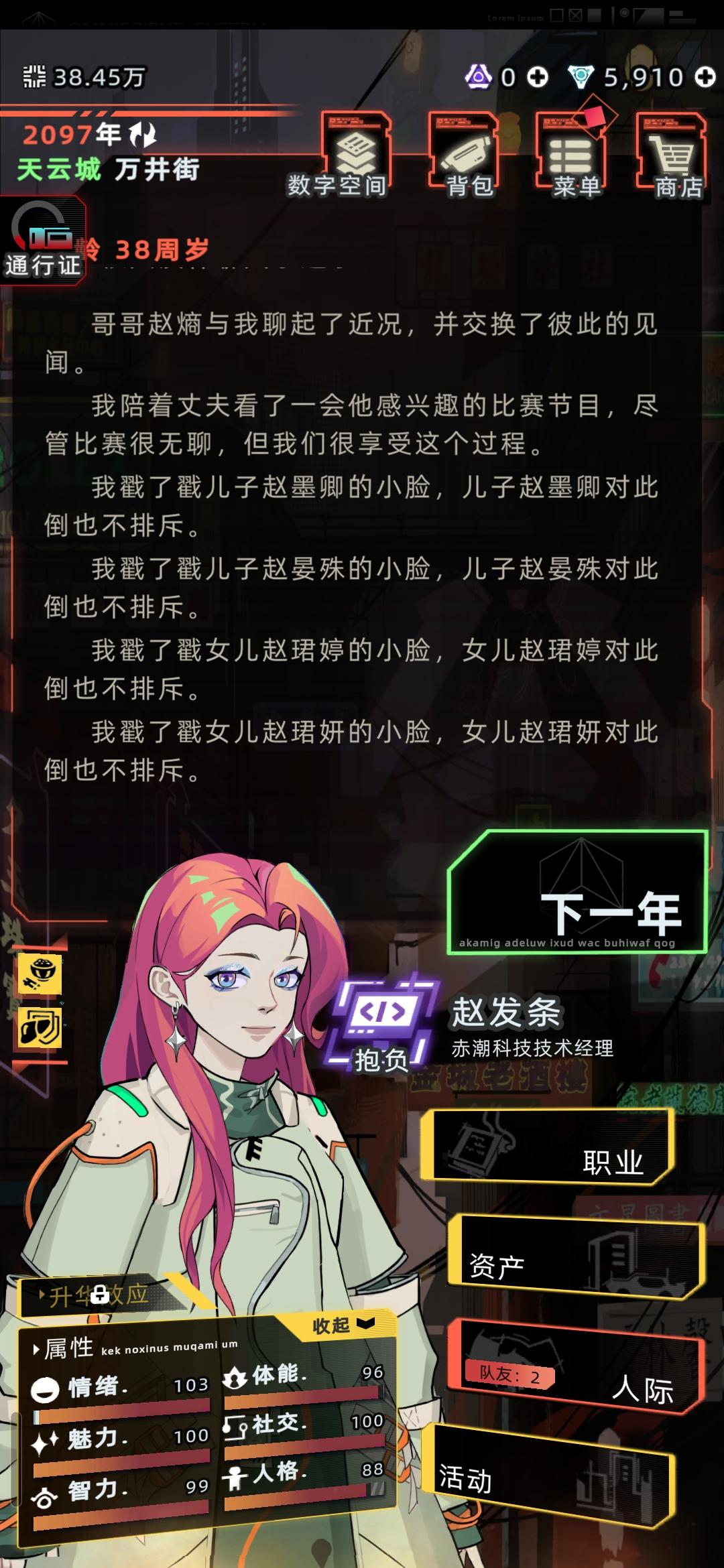 刚开始没有这种想法,主要是为了玩赛季的新血脉,狼人血脉,刚出的角色肯定版本很强势,一年玩到了第4代,因为进了上城区,孩子都不生孩子,血脉都断层了 ,那时候真的觉得好无语啊,又要重开一档。接触未来人生游戏这么久,看到tap tap上的攻略,说有人打到了好多好多信用点(需要玩上百代,6000多年的纪元),我就找到了自己的目标。很赞同攻略上的兄弟说了赚更多的钱是为了更好的体验流戏,没钱处处难搞。于是我决