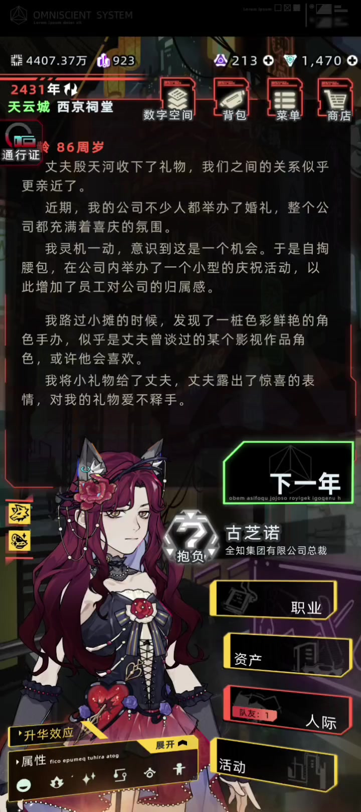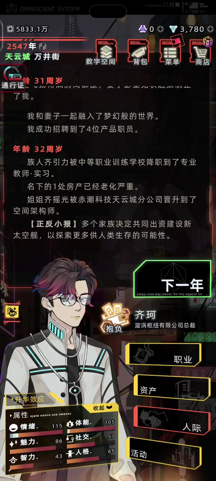 依旧点击没反应,只有下一年有反应 然后下然后下一年之后大多数按键都好了,但是依旧没办法氪金,没办法去云存档 本来想着买高级人生 现在都买不了了