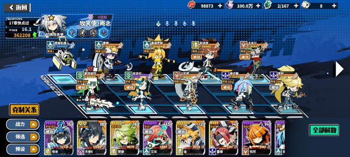 其实总的来说就是不费时,但玩久了会感到无聊(我已经摆烂了)后期晶石不好获得,我也属于是普池40抽内必有一个,活动池次次都是小保底,所以没有一个天使是满星的(哭哭),天使和普通参赛者的差距还是有的,所以我也会有点跟不上别人,大体还好。
