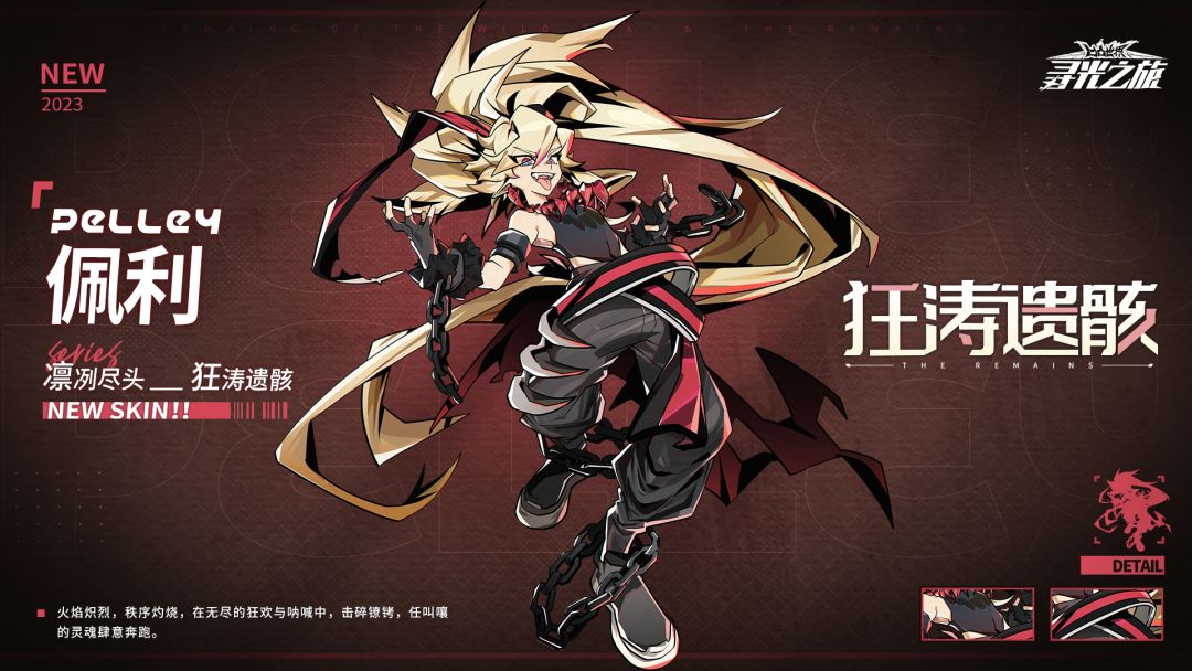 ▷第四期通行证-皮肤展示 //凛冽尽头-佩利『狂涛遗骸』 「火焰炽烈,秩序灼烧,在无尽的狂欢与呐喊中,击碎镣铐,任叫嚷的灵魂肆意奔跑。」 【05/01 5:00 - 06/01 5:00】 『狂涛遗骸』可通过【第四期通行证】获取 *通行证将根据每组服务器的开服时间逐步开放 ============================ ※关注球球及时获取更多内容及最新资讯! 【寻光之旅】官方资讯平台: ①