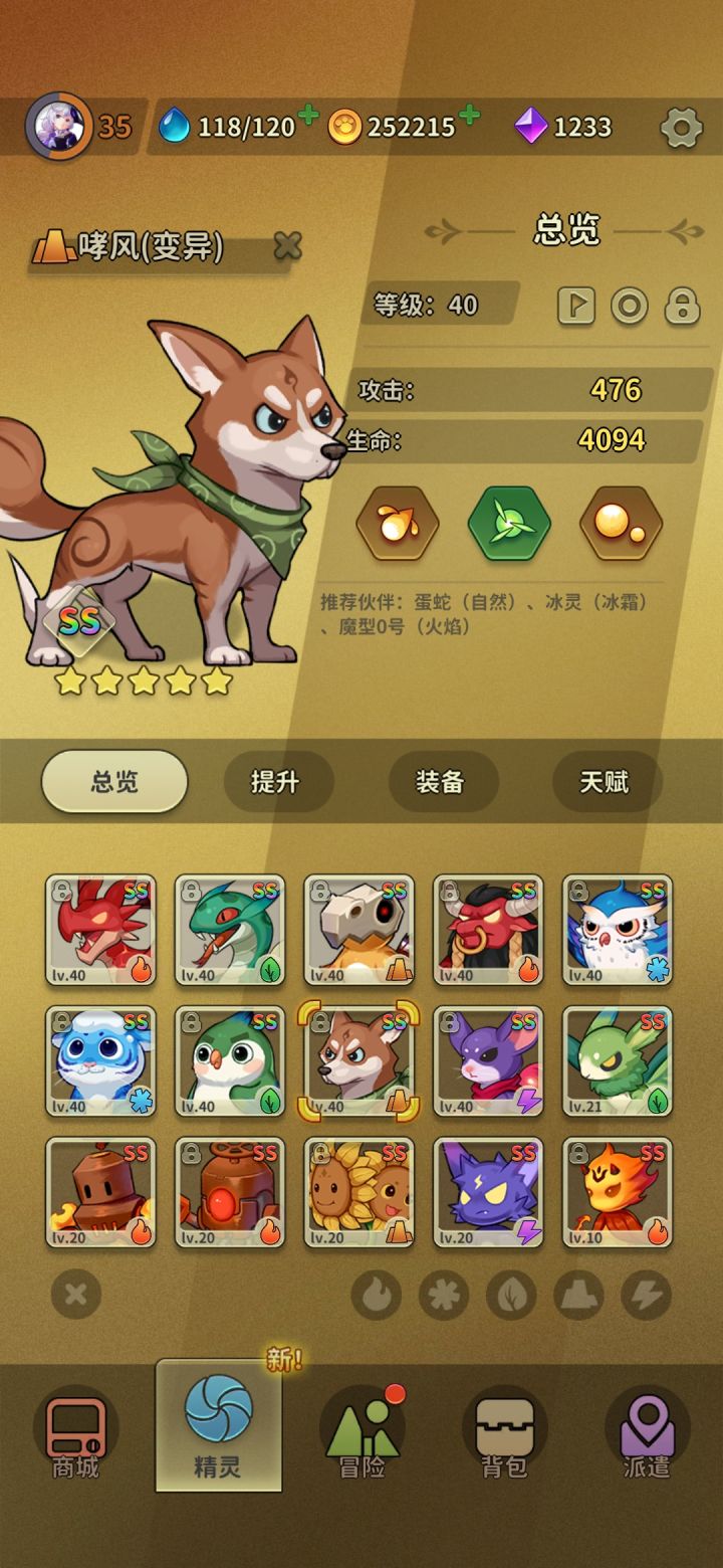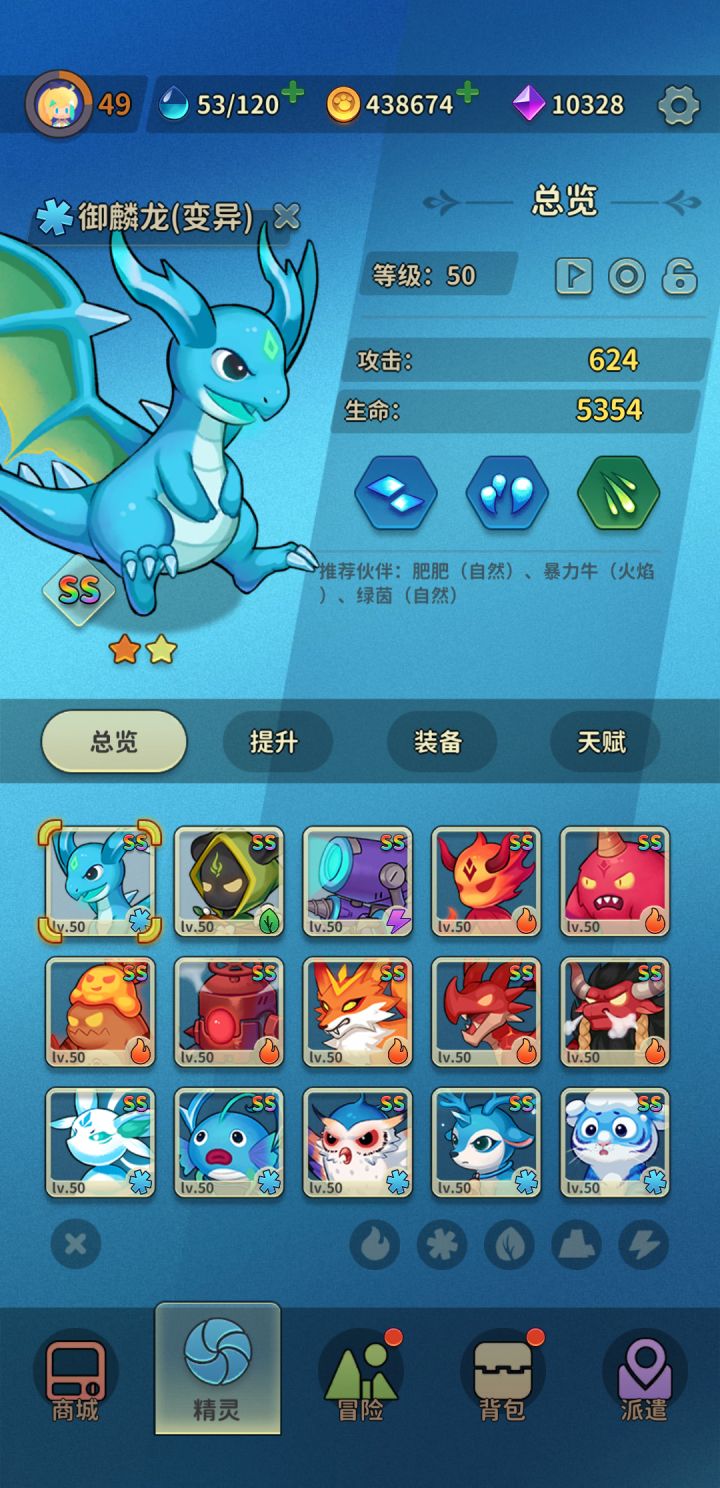 首先,它足够的轻松。休闲游戏最重要的就是轻松休闲。这个游戏是你带着自己的一群小精灵去大陆上各个区域探险,没有繁杂的世界观,没有繁杂的装备强化、装备升星、装备附魔等等让人心烦的装备系统,对宠物的养成特别简单。而且最主要的是,这个游戏没有废物的宠物,任何独特的小宠物都可以编入队伍,不用像其他游戏有强度梯队,一代版本一代神。你可以随心所欲的养成自己喜欢的宠物。在配队方面只要保证自己三个宠物的属性不同即可达成一个可用的配队。