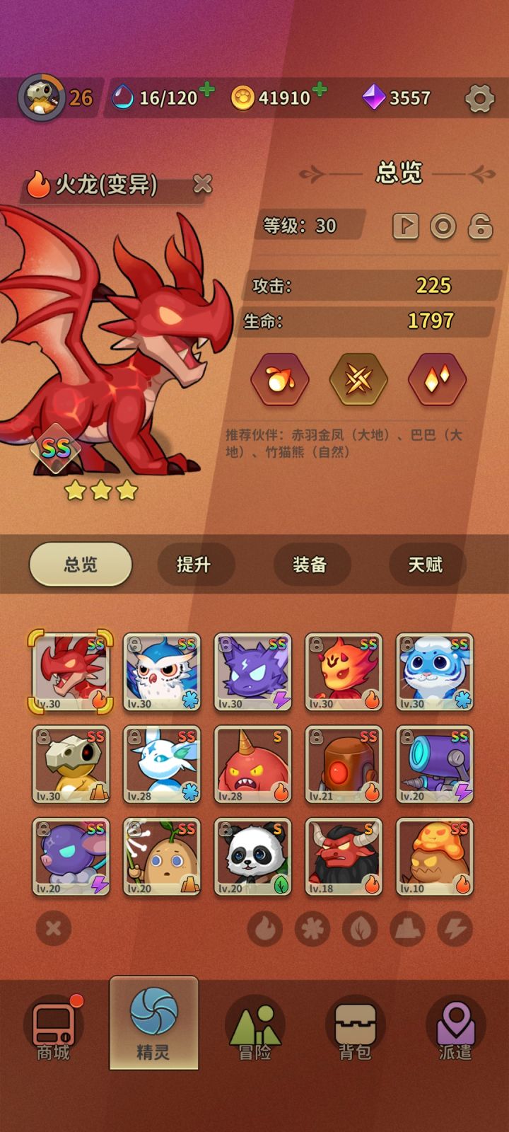 玩了一天半,目前7个变异(火龙是运气好直接A升变异的),6个ss(还有一个蛋蛇没截到),推图的话抄作业组了两个队伍,也算是有条不紊进行中。
