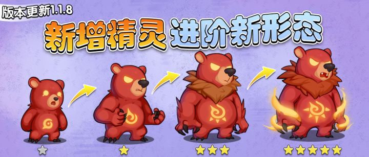 V1.1.8更新内容:1、增加精灵进阶皮肤,进阶1/3/5星时获得新形态。2、增加爬塔和混沌之境自动战斗功能。3、增加混沌之境怪物逃跑机制(15回合)。4、优化一键穿戴,现在一键穿戴会自动替换最好的装备。5、优化广告,增加部分视频广告奖励:—离线双倍奖励—快速派遣获得双倍奖励—转盘再来一次获得双倍奖励—超级冒险次数增加至5次—每个精灵每天可以看广告免费重塑一次6、优化十连开,