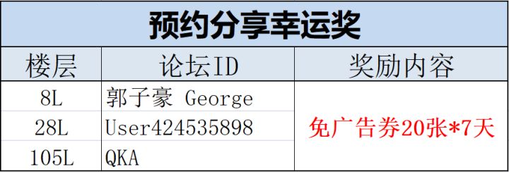 因新游上线事情较多,该活动结果拖延到今天才公布,深感抱歉。原活动贴:话不多说,来看下哪几位小伙伴获得了我们的免广告幸运奖吧!其他分享了游戏、回复了活动贴的玩家也可以获得参与道具礼包:钻石*50、弱效粉尘*200、天赋之书*1、重塑之证*1请以上玩家和参与活动的玩家在3月14日上午9:30 ——3月15日下午6:30期间,联系客服QQ:2851702376(在线时间:工作日9:30—18:3