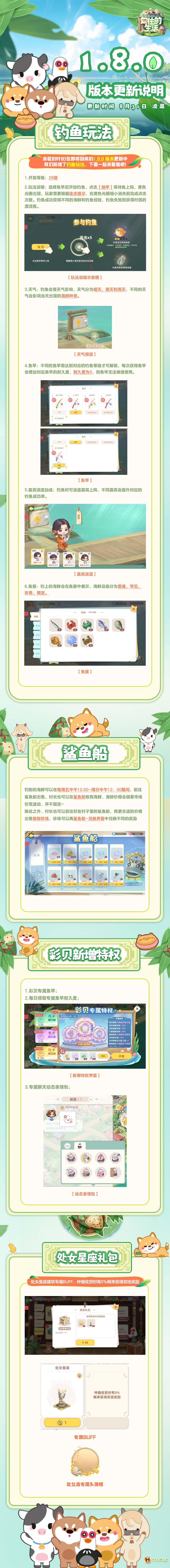 亲爱的各位村长: 我们的游戏预计于9月7日17:00进行不停服更新,各位村长只需重新启动游戏加载最新资源即可。并为村长送上维护奖励: 15分钟加速卡*1、金币*500; 1、修复心愿屋特殊情况下,弹窗空白的问题; 2、修复宠物相关的主线任务完成后,进度显示异常的问题; 3、修复嘉宾icon显示异常的问题; 4、修复鲨鱼船收购时间异常问题; 5、优化养蜂场美术表现;