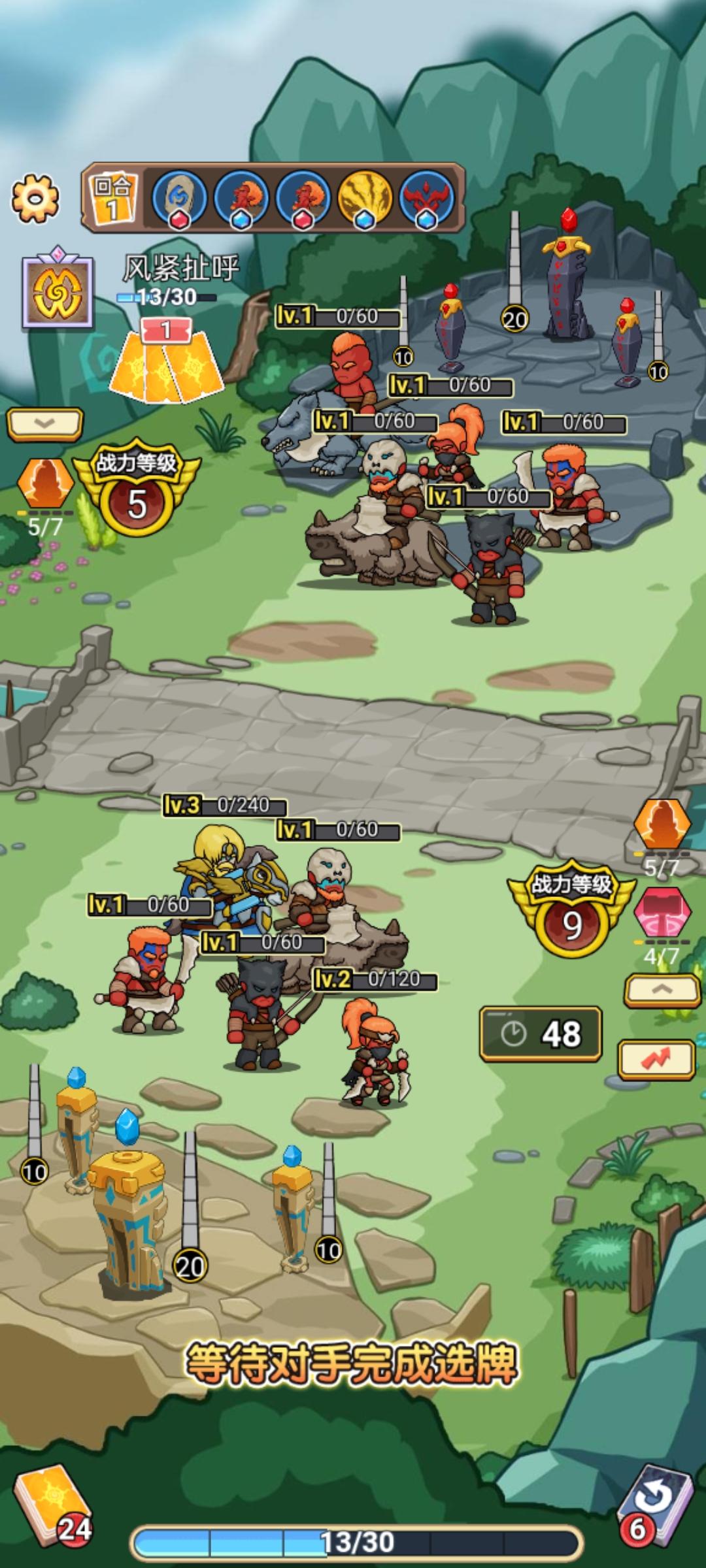 3.在第二回合如果抽到石头人的强化牌,优先丢大的,如果卡手小的也丢,优先存能量和提升卡牌等级,如果顺的话第三回合结束牌库基本上只剩法术牌和强化牌了,这时候可以直接开始用翻倍+强化牌开始打反击或者终结比赛了.