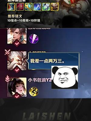 我警告你们耗子尾汁!!小王可是我的好兄弟(暂定)!! 【S35王者荣耀清汤大老爷:磊哥成黑号,我已成白号!-哔哩哔哩】 https://b23.tv/PpS62Mm —— 有意思的提问:如果你没有登峰造极的能力,是永远不腻的一直使用?还是再也不玩,而去尝试一些新鲜的事物? —— 技能:疾跑 加点:主一副二,有大点大 铭文:攻速移速、法穿、法强法穿(幸运暴击) 装备:极影/星泉、疾步鞋、梦魇(必出)