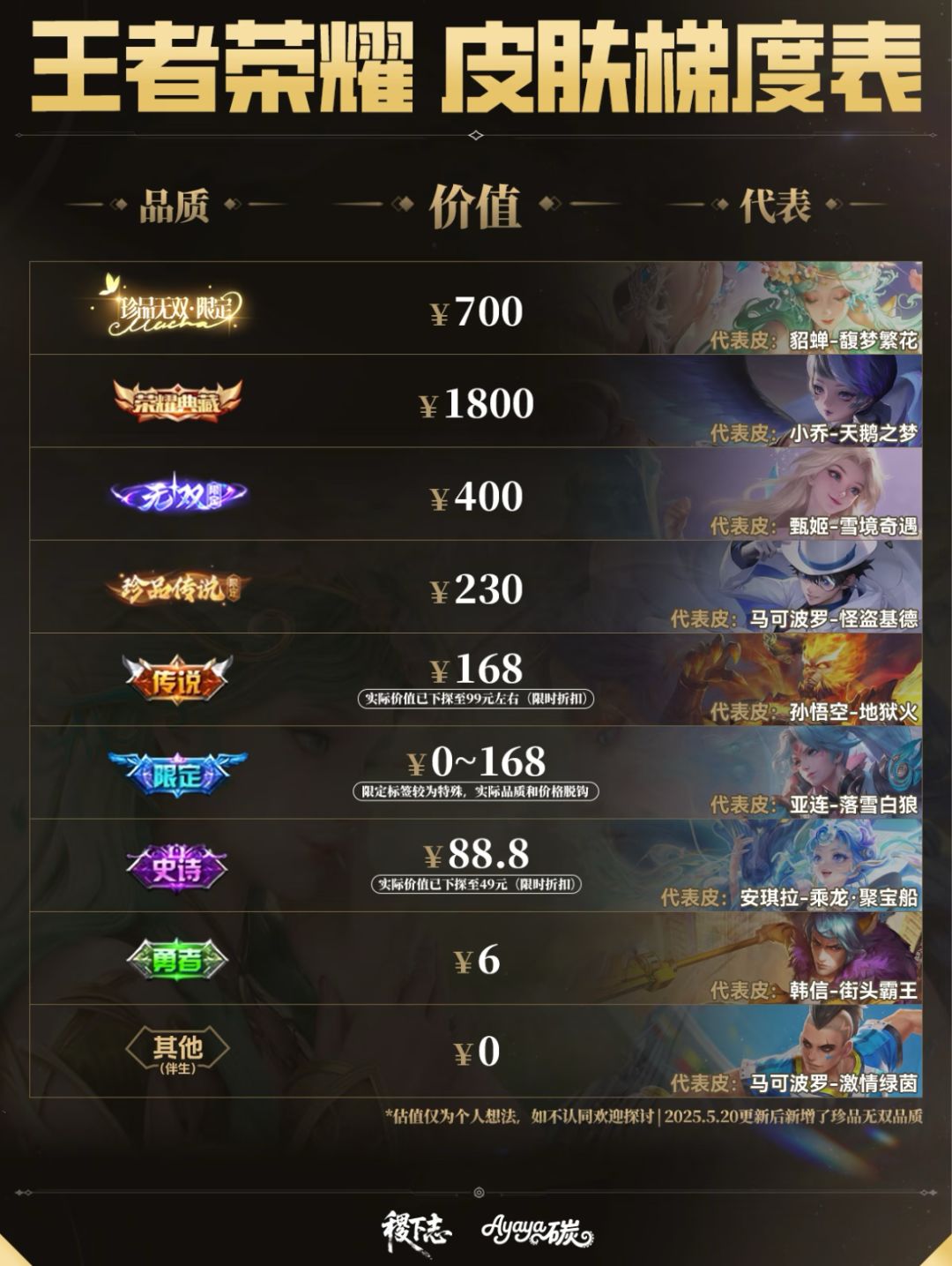修改于24年11月版本 出装思路因为版本变动比以前改变很多。 图片上的出装旨在提供一种新的思路,不习惯的按热门的圣杯出装就行了。 由于打野和中路貂蝉强度比较低,大主播都是貂蝉上单,所以这套出装也是对抗路出装, 出完小圣杯就可以出cd鞋。 出金身时的小书,换抵抗鞋 玩中路铭文带10圣人,清线快,平时铭文照常10怜悯10调和 装备评价~~ t0装备(非出不可): 冷却鞋(+后期的抵抗鞋)、 时之预言(