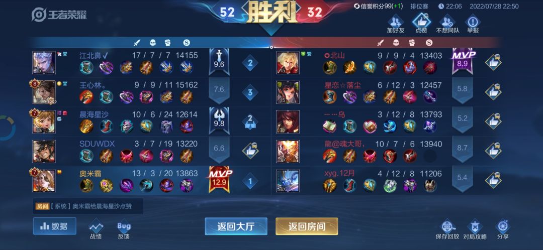 日暮之后,按喜好补 吸血书/圣杯,最后冷却鞋换法穿鞋。金身20分钟后再升级 铭文相应配好,吸血和满冷却 玩得不怎么样,被公孙离的二技能挡了好几次大。 不过既然得了MVP,就晒一下吧,顺便把出装套路教给大家。 。。。。。。 奥米霸的 S28 王者荣耀出装教学 - TapTap https://www.taptap.com/topic/21233097 。。。。。。 不敢上去1和2?被对面抓爆?轻轻一碰连骨头就碎? 用了这套出装,肉得鸭皮的同时,伤害还不错。。人也敢上去1和2了!👍