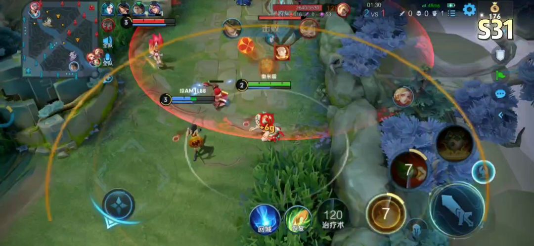 【我屏幕上面的外圈:使用完1以后2的极限距离。为的就是能够精确清掉所有兵,不漏掉任何一个。浪费时间就等于增加被抓被打死的危险】