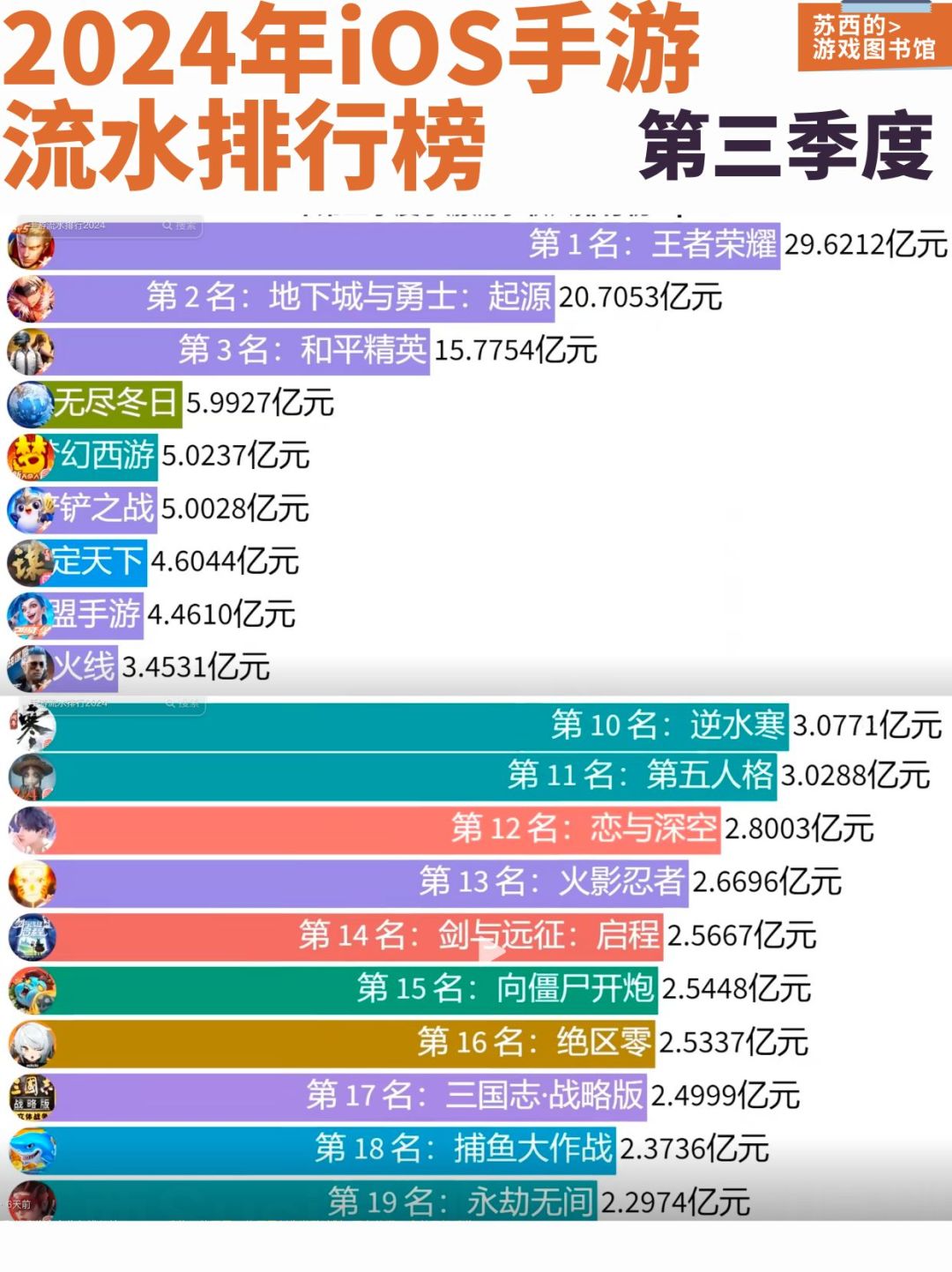 24年第三季度iOS手游流水排行榜