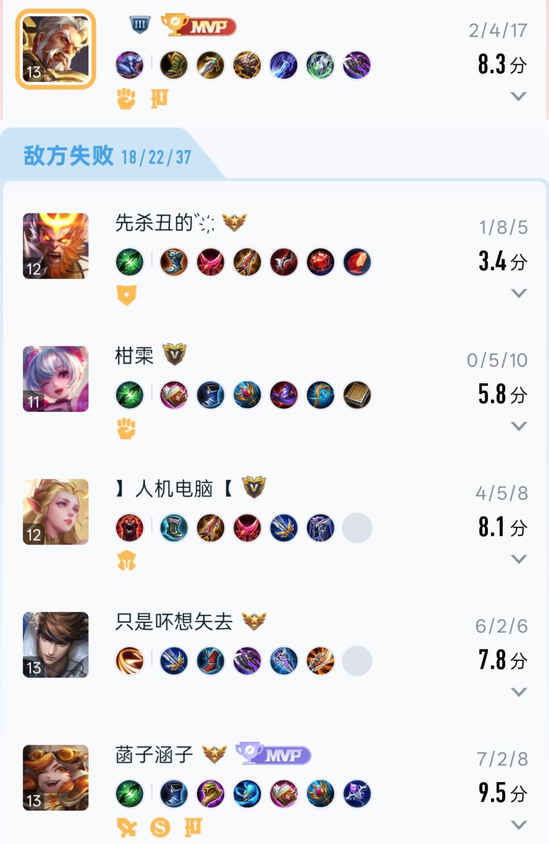 大乱斗打呆射很容易被突脸,如果家里有AD输出,不如把输出交给队友,自己当诱饵主防爆发和突进。 黄忠当着五个人开大还是比较挑衅的,容易让对方滋生想法,不详防一手突进和爆发射手,进来后弱化输出和移速,不详防一手法师,同时造成血量低的假象,制裁的被动也有这个效果。 弱化、苍穹、复活甲进一步提高容错率。 这种打法自己的评分会很低,但效果稳定,并且对面会非常难受。