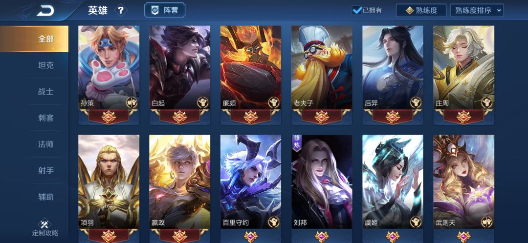 主职业:坦克 项羽(0%) 1红月9异变10鹰眼9隐匿1兽痕 刘邦(42%) 10宿命7心眼3怜悯2兽痕8凋合 白起/猪八戒/苏烈(14%) 2红月8宿命10虚空1狩猎9凋合 廉颇(14%) 1红月9异变10鹰眼1兽痕1狩猎8隐匿 程咬金(28%) 1红月5异变4祸乱10鹰眼2兽痕8狩猎 夏侯惇(28%) 1红月4缩命5异变10虚空1兽痕4狩猎5凋合 。。 主职业:战士 孙策/蒙恬/亚瑟/钟无艳/