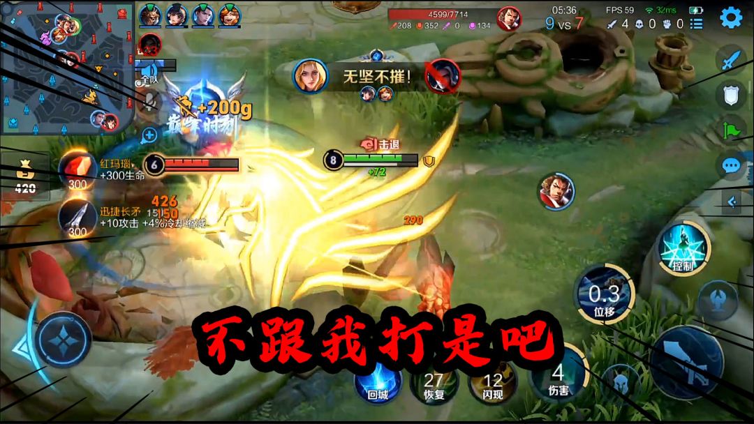 然后是因为我的队友不知道为什么他们都不敢开,所以这里是我先上去开,我的想法就是我错对面的状态,因为我们这边打野是一个诸葛亮,然后上单的话,可能他是不怎么敢操作,所以我就直接勇敢向前,当一个ad敢向前的事候,那他该是有多帅呀。我的想法很简单,在队友不敢开的时候,你一定要勇敢一点,在保证自己安全的情况下打开团战的局面,不然拖下去只会是慢慢死亡。