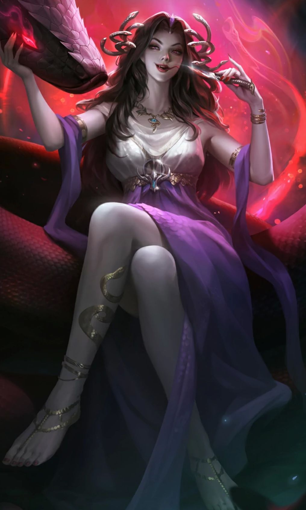 设计灵感:王者现在英雄众多,使用的武器也是五花八门,可你仔细观察会发现,其实还有些武器是没有,比如鞭。于是我就心血来潮,想着设计一位用鞭的英雄,但ta应该是怎么样的呢?直到我看见了这张图 PS:第一次写,纯属自娱自乐,希望爸爸们多多指教。因为数值设定麻烦,所以暂用x代替。 初步定位分路:射手 强势期:(大)后期 被动—灵蛇宴 每x分钟释放一条继承x属性的灵蛇游荡峡谷。当灵蛇x范围内有敌方英雄时会暴