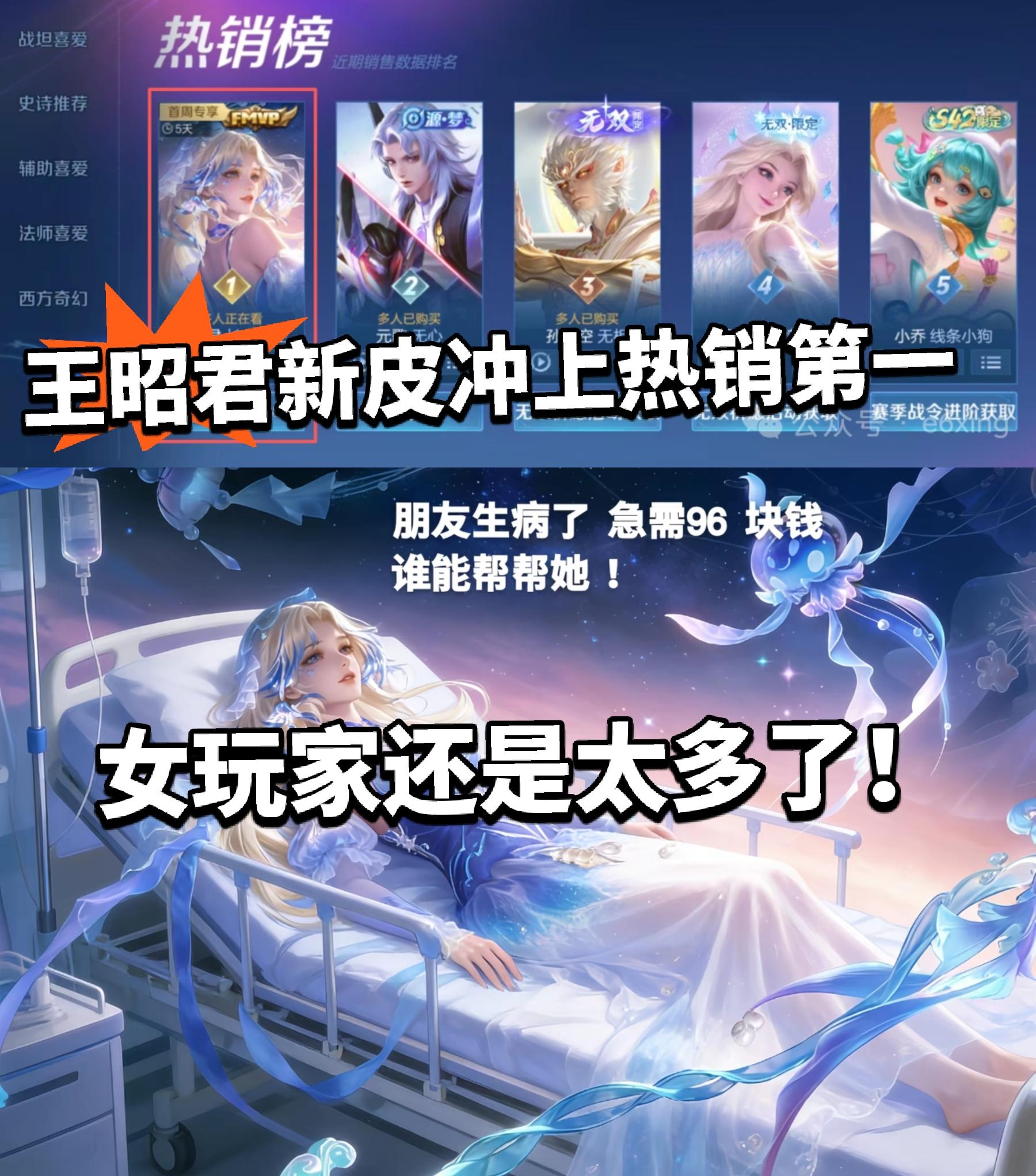 王昭君新皮登顶热销榜第一,女玩家太多!