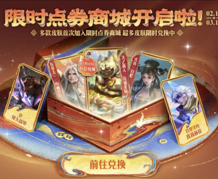 王者限时点券上新啦!没想到他与小马钱换皮肤同时进行!这岂不是可以换两个传说皮的!①每日参与竞猜,一共10天,其中15/16号可得68,28×8+68×2=360②累计登录四天198限时点券③除夕/春节登录666限时点券④累计充值588档位660限时点券⑤买两个年限298限时点券合计360+198+666+660+298=2182⑥买3/4/5个年限分别多得298/198/198年限