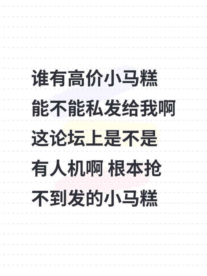 谁有高价小马糕 能不能私发给我啊 这论坛上是不是有人机啊 根本抢不到发的小马糕