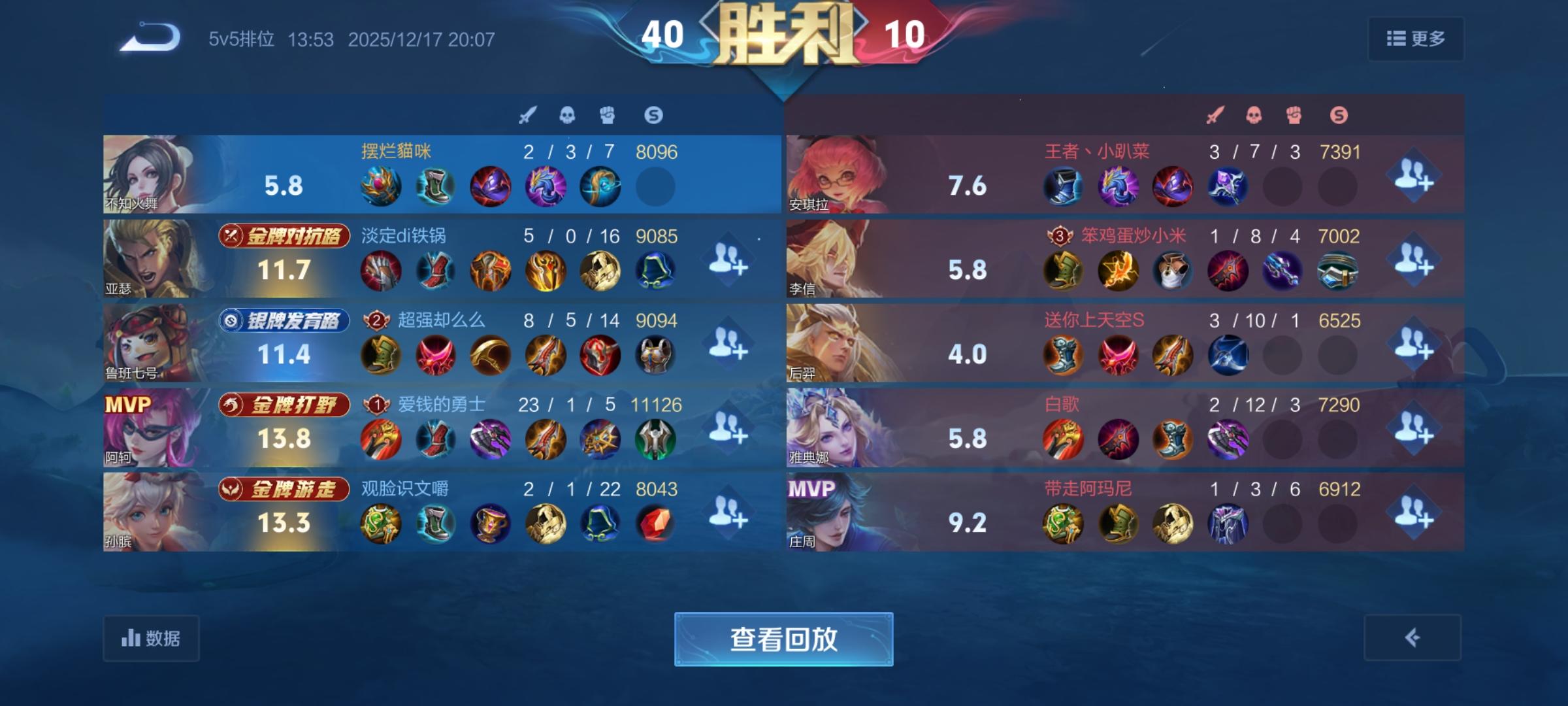 经过我的不懈努力,我胜利局的评分已经可以稳过5.0分了