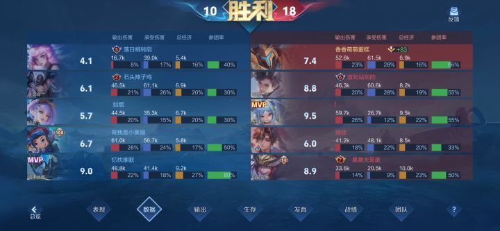 墨子的评分到底和什么有关,参团、承伤、控制、伤害这些数据也不算差啊,为什么评分这么低