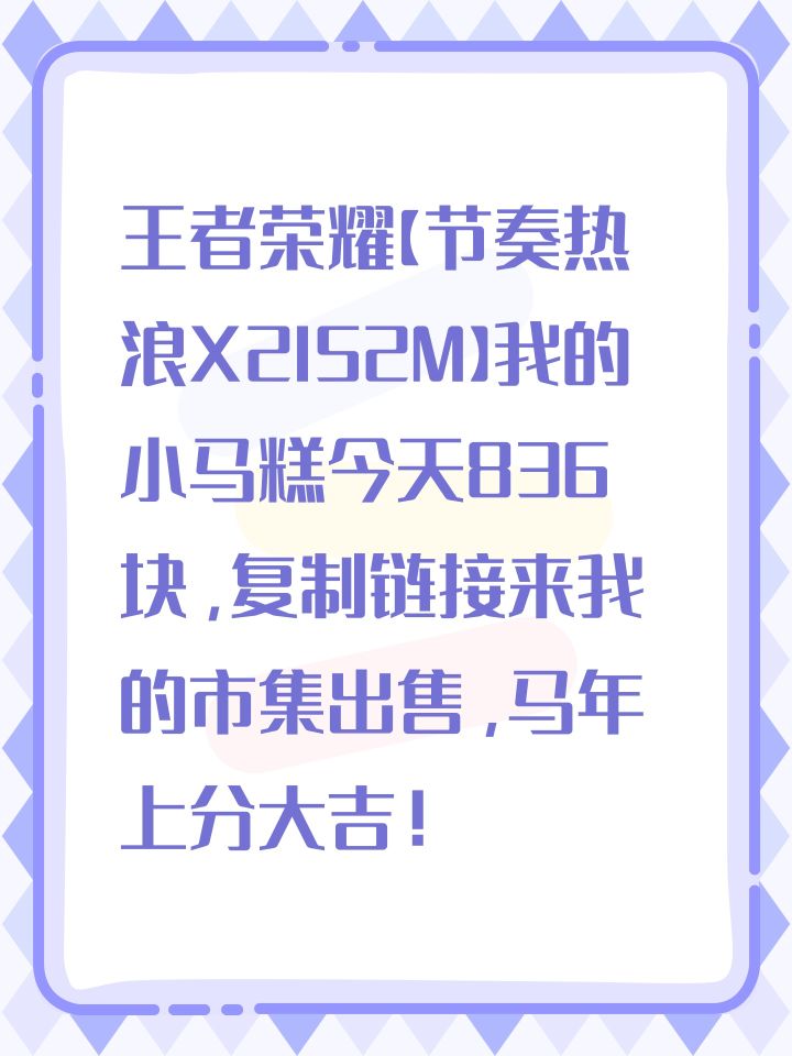 王者荣耀【节奏热浪X2I52M】我的小马糕今天836块,复制链接来我的市集出售,马年上分大吉!