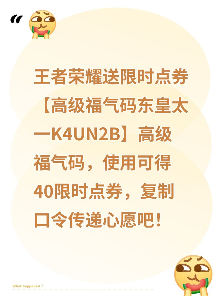 王者荣耀送限时点券【高级福气码东皇太一K4UN2B】高级福气码,使用可得40限时点券,复制口令传递心愿吧! 来自TapTap[ID:23305915 古瑟]