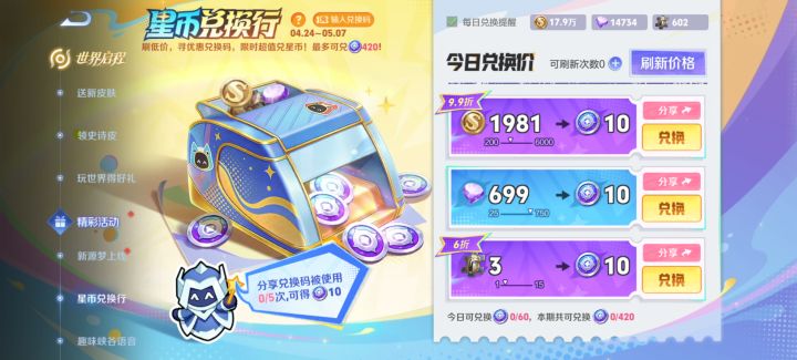 王者荣耀星币兑换行【4折金币18IO0S】今天我的兑价:809金币,复制链接可直接使用!