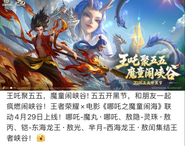 王者荣耀×哪吒2联动!敖光芈月新皮肤4.29