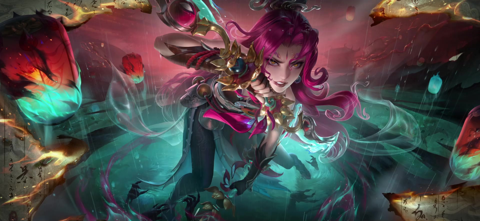 【阿轲-罗刹妄海】全新妖灵志异系列皮肤爆料来袭!这次,阿轲化身为强大的罗刹妖灵,一头玫红及腰长发,诡丽张扬,皮甲劲装裹住利落身形,飘飘裙摆更衬狂肆个性。手中双刃以金莲与魔眼为饰,冷光幽幽。力量奔涌,怒火燃烧,即将以神异之姿降临峡谷,刺破罗刹海市三千妄相。一起来看看爆料吧~(P.S.大招敌方视角爆料视频中有演示哦~)开马年好运卡,【阿轲-罗刹妄海】首周折后仅售890点券,并赠送个性按键!*此为