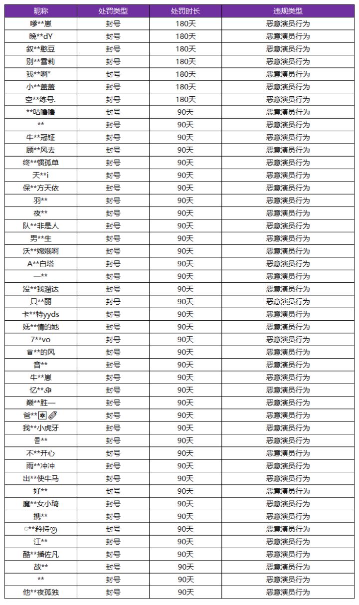 5月19日“演员”惩罚名单