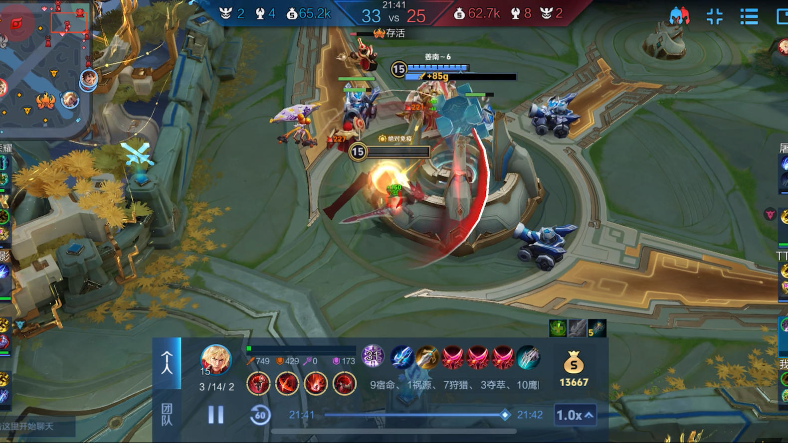 虽然对局因阵容问题最终失败,但我认为黄刀很适合云缨,打团时能稳定收割敌方C位,还能反杀追击的凯。