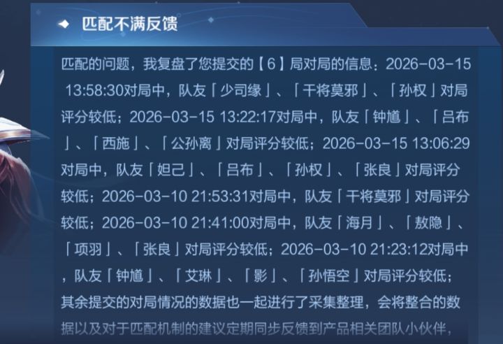 你的意思是把把四个队友低评分我带不动上不去分举报不成功还被阴阳该的呗