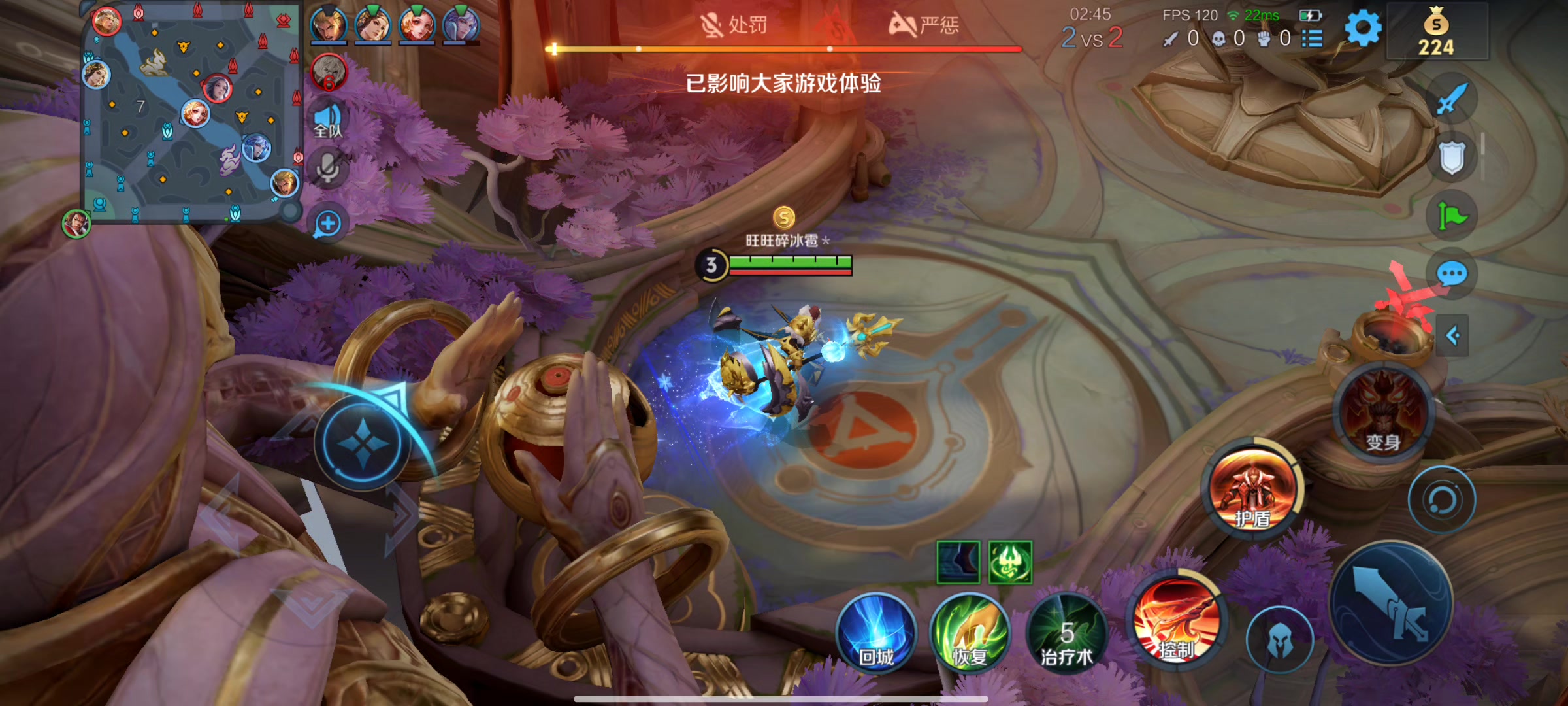 起初,我以为这只是一把平平无奇的游戏,结果,一进去就被制裁了,我刚和射手跑到线上,然后方向键就不听我指挥了(完全划不动,网也没问题,也不能录屏),沿着墙跑回了自家高地,然后我就被系统警告挂机了,然后我想着喊了小爱同学打开录屏,这是可以的,然后我就可以出门了,在上路和射手拿下三个人头后,我又不能控制了(在视频的1分30秒),这时我想结束录屏,也保存不了,最后也是喊小爱同学保存的,当然也是成功的输了,