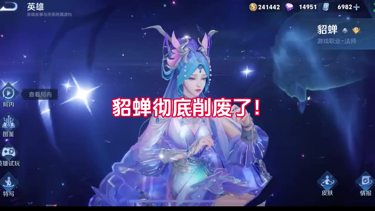 貂蝉又削弱了!这次彻底废了,为什么要削弱貂蝉😭我真无语!!!